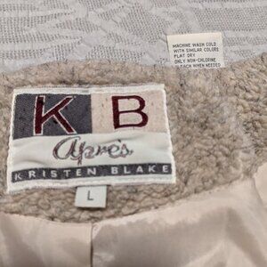 Selling a full length oatmeal-colored vintage (Kristen Blake) teddy coat! This coat is lined and super warm and also has a hood. Good used condition- only visible flaw is that the buttons are a little loose but those can easily be sewed in more tightly. Size L (true to size, could also maybe fit XL).