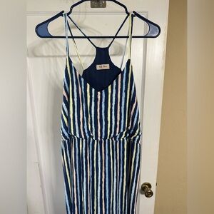 Stylish maternity maxi dress with blue and white stripes. Features a sleeveless design with a relaxed fit. Size XL. In great condition, only worn a few times.