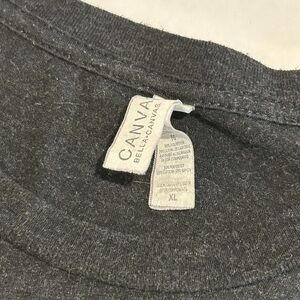 This is a 100% cotton Bella Canvas black tee from Wicked Clothes. A bit worn, which is only noticeable by slight pilling in some of the fabric.