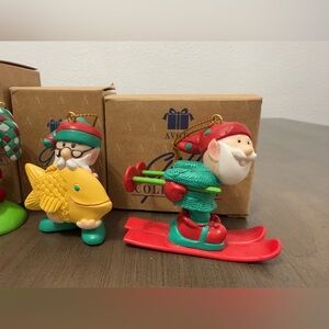 Full set of 4 vintage Avon "Elves' Day Off" Christmas ornaments Santa Sports