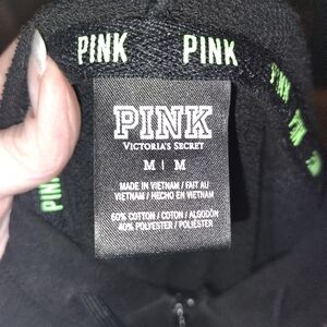 PINK Victoria's secret black campus edition full zip hoodie. With bright neon green dog logo on the left side of the chest. Along with neon green racer stripe on the shoulders. In great condition no fading, holes, wear or stains that I've seen. Fits true to size in my opinion size medium.