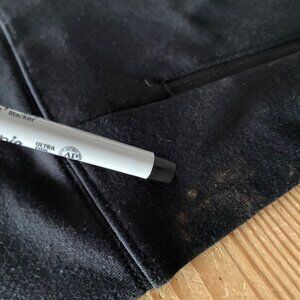 I've listed it as Good condition. There is one small discoloration (please see photo). Other than that it's in like-new condition, only worn once to try on for fit. Color is black and size is medium.