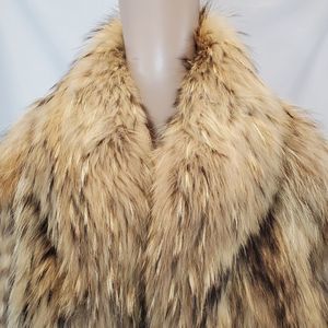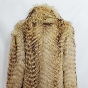 Full-Length Genuine Raccoon Fur Coat Tan Chevron Patterned Apres Ski Size Large