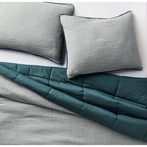 Brand new and sold out at Target. This 3-piece Full/Queen comforter set from Casaluna features a deep dark teal blue chambray texture, 250 thread count cotton, and OEKO-TEX certification for peace of mind. A beautiful addition to any modern bedroom.