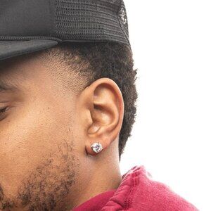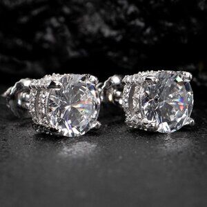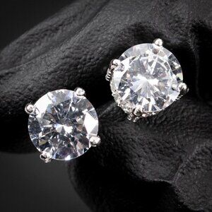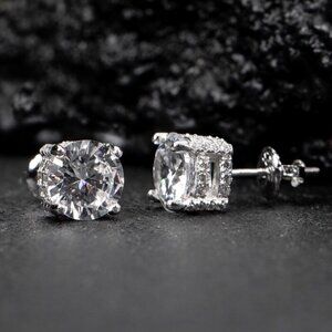 HAND MADE SOLITAIRE SETTING: The stunning mens round stud earrings metal is Sterling Silver white gold plated. The stones feature