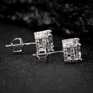 Sparkly Iced cz Stud Earrings 925 Sterling Silver Princess Cut Cubic Zircon. Zirconia Shaped: Round Cut and Square Cut CZ Studs Earrings for Women Men; Zirconia Stud Earrings Size 9mm Available.