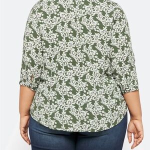 Chic green blouse with floral pattern. Three-quarter sleeves. Perfect for casual wear.