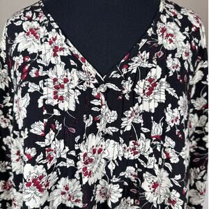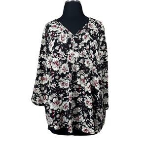 Fun 2 Fun Stitch Fix Floral Pintuck Pullover Blouse Top Black 2XL Office Casual