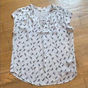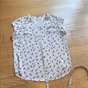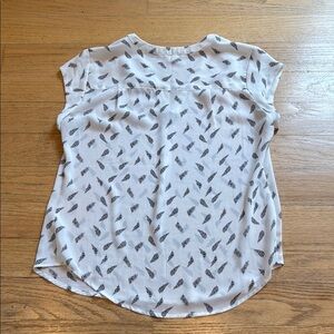 This blouse features a relaxed fit with cap sleeves and a buttoned front, perfect for a casual yet stylish look. The black and white color palette adds a versatile touch, making it suitable for various occasions. Its lightweight fabric ensures comfort throughout the day.