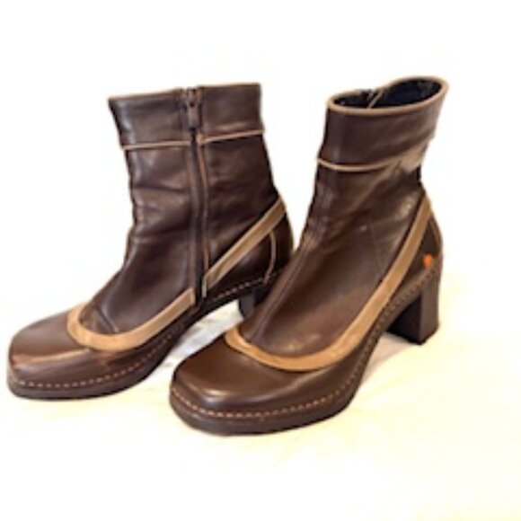 High quality ART Company ankle boots, brown with beige trim and chunky heel. EU size 41. Excellent condition.