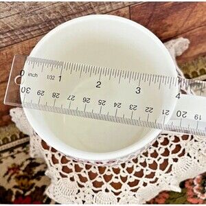 Approx 2.75 tall x 4 diameter at rim, with no chips, cracks or other issues.