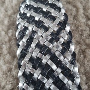 Super fun belt with silver and black glitter interwoven pieces that can fit most sizes.