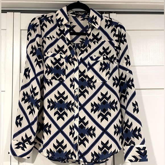 Express blue patterned blouse Barely worn