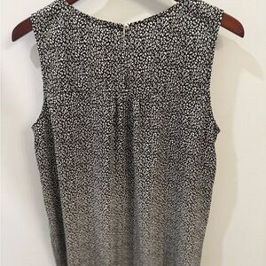 Beautiful, fun blouse. This top was easy to dress up or down. Looks great with slacks and jeans. Could pair with a cardigan, jean jacket, or without. Black and cream. Has stings to tie in front for an extra detail. Gently used.