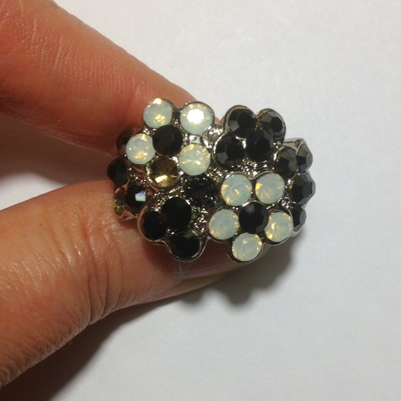 Fun Chunky Ring with Opaque and Black Rhinestone-like settings - I actually did not notice this until the photo so its not noticeable but it appears to missing 1 Opaque Stone - reflected in price