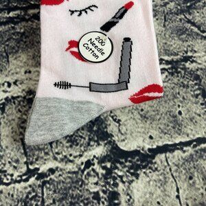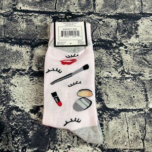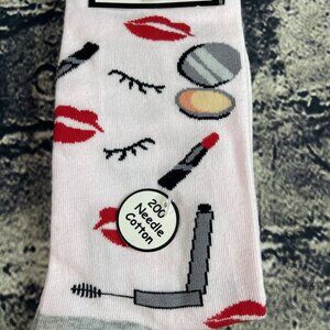 Fun Circle Women's Shoe Sz 5-10 Socks 1 Pair of Pink Makeup Lips Eyelashes Socks