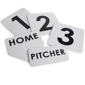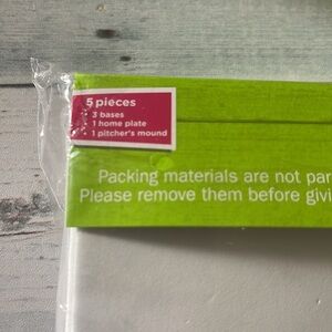 1st, 2nd & 3rd bases, home plate and pitcher plate, white heavy foam with black lettering, NEW in package