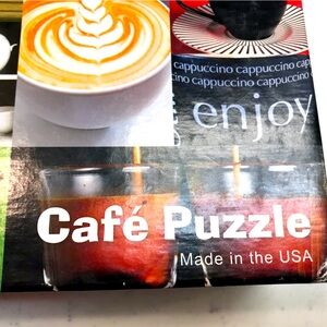 Beautiful well cared for puzzle with coffee cafe theme art. Like new. Extra care given to assure all pieces are included but it isn’t guaranteed.