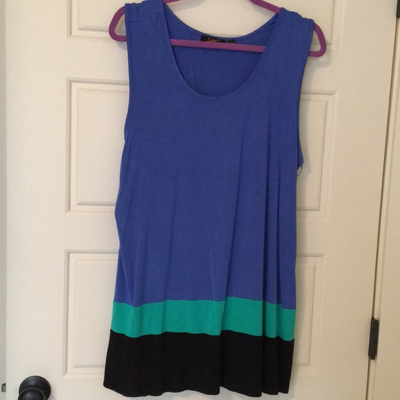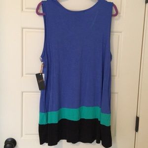 Bright color-block tank. L33 great for layering, wearing alone, swimsuit cover-up, etc. 95% viscose/5% spandex.
