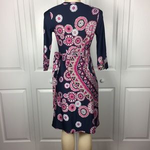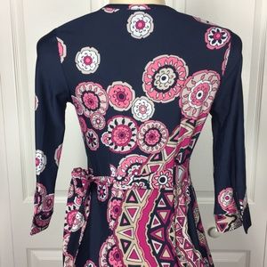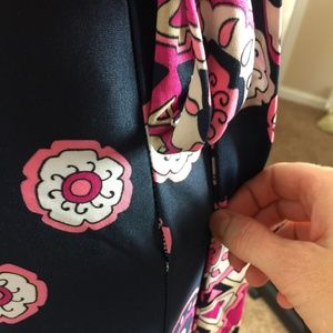 Silky stretchy material. Worn only once. I like to point out any problems and even though it's minor, it does have a small part in the seam on the side that needs a few stitches.