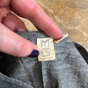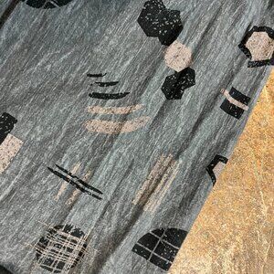 Collector's item! Very stylish and cute block-printed dress in size S by former independent Portland clothing brand Make It Good, later called North of West. Cinched waist makes for a flattering fit, and the blue-gray crinkled cotton fabric and black/shimmery silver block prints make it perfect for dressing up or dressing down. Loved this dress, but it doesn't fit anymore! Measurements (flat): 16.5" pit to pit, , 13.5" waist (stretches to 16"), 34.5" shoulder to bottom hem.