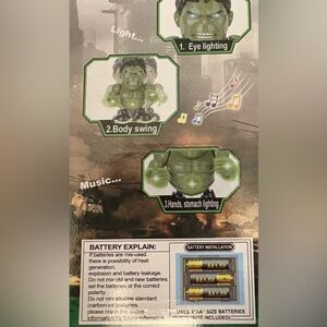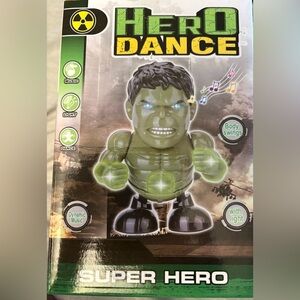 NIB- Incredible Hulk Bluetooth connect for music dancing lights up, swings body perfect for any child’s party. This Hulk plays music dances and eyes turn green..