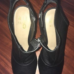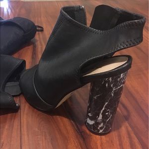 Black pleather peep toe with zipper sides and marble heels. Super cute💖 only worn one time