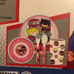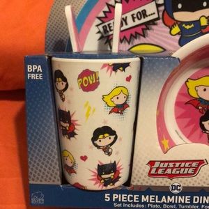 Justice League joining you for meal time! Set includes plate, bowl, tumbler, fork & spoon.
