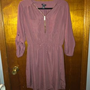 Incredibly unique color; 3/4 length sleeves; zipper front; tie accent waist; so flattering