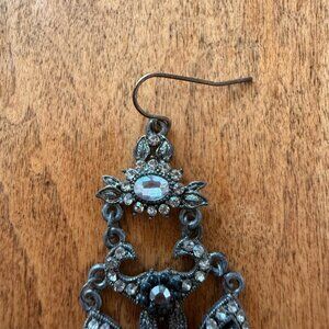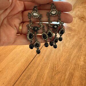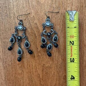 Great for a night out, holidays, or feeling sparkly on a workday, these dangly chandelier earrings are super fun. They feature black beads and faux rhinestones in silver-tone settings with a floral, vintage flair.