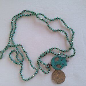 Fun Faux Turquoise Skull Pendant - Long Necklace - Handcrafted!