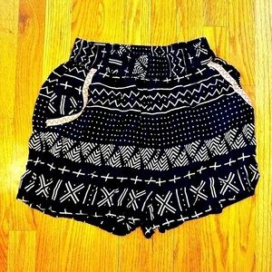 Fun & Flirt Black Aztec patterned Boho shorts with pockets.