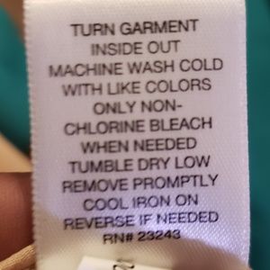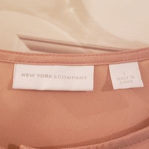 NWOT NY&Co blouse. Large. Pullover. Single front vertical ruffle showcases a bit of sophistication, yet fun and flirty! Three- quarter length sleeve with elastic band to stay in place. 100% polyester. How to care for garment shown in picture above.