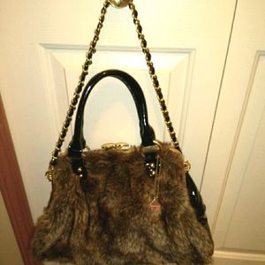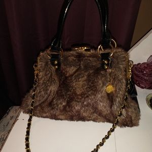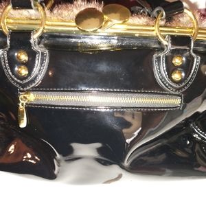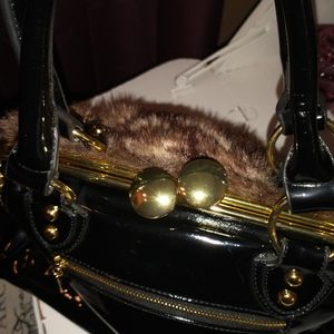 Faux Fur shades of brown, black patent leather with Gold Hard Ware