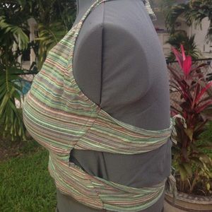 Bought this in Spain, not realizing that it would essentially only contain One of my bosoms, and not the rest of my upper body... Definitely a small-extra small. But the cut is pretty rad, and it has a fun set of colors mixed in.