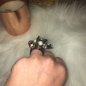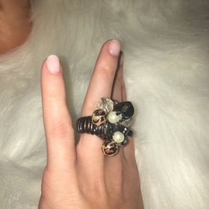 This ring is certainly unique and fun! The beads/jewels are loose so it moves as you do. The band is stretchy.