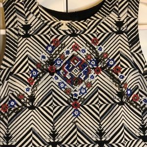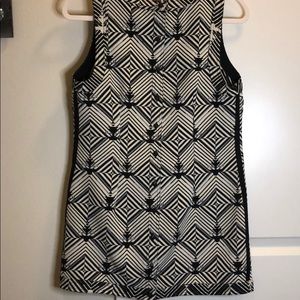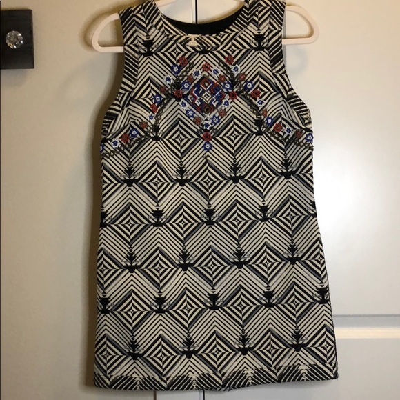 Such a fun dress! Black and white geometric pattern with beaded embellishments on the front. Has buttons all the way down the back. Size S.
