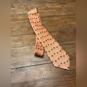 Fun Handmade Silk Coral Orange Monkey & Banana Tropical Necktie