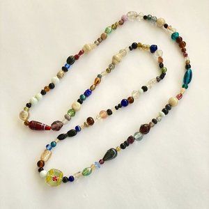 Fun India Candy Glass Chunky Continuous Organic Boho Over The Head Necklace 38”