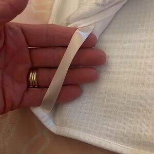 Both towels are plain white on the back. They both have a corner strap on the back.