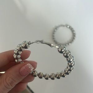 Super fun and big hoop earrings! Never worn, silver. Lightweight.