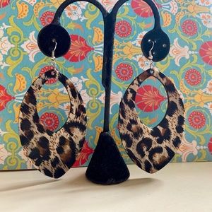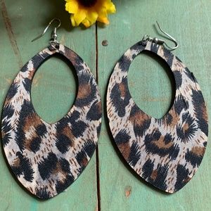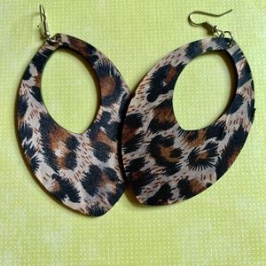 Fun Leopard Oval Cutout Hoop Dangle Earrings - Big Animal Print Earrings