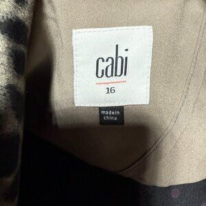 Super cute leopard print jacket is made from a ponte knit so its as comfortable as it is cute. Made by CAbi has the cute details throughout. Lightly worn but preloved. In good condition.