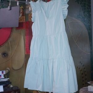 Step out in style with this Fun light green ruffle dress. Perfect for any occasion, this dress offers a flattering fit and a touch of sophistication.Cute w blue denim jacket