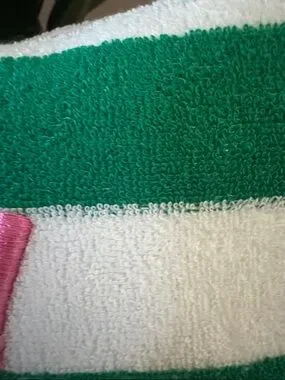 “Day Dinker” Terry cloth embroidered make-up bag. Can even be used as a casual clutch. 8” wide, 5” tall, 2” deep.