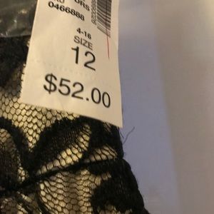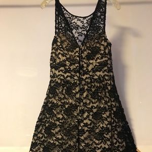 Double layered dress. Inside layer is cream color and outside layer is black lace. Rinds a little small and is a little stretchy of a fit.