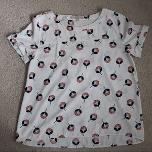 Unique patterned blouse. Rolled Sleeves. Meant to fit a little flowy. True to size.