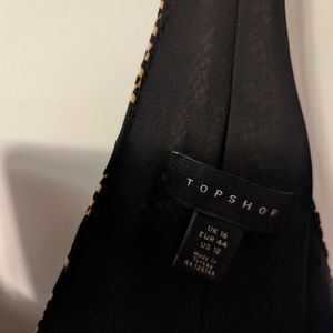 Low back and front. Very flowy. Fun pattern. Silky feel.