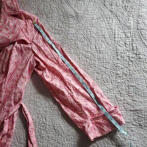 Fun pink embroidered fashion coat from Bandolino. Has slit at bottom of the back middle. Seems to have been secured at some point but could easily be cut back open for that flair.