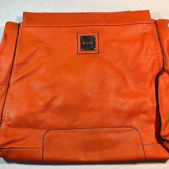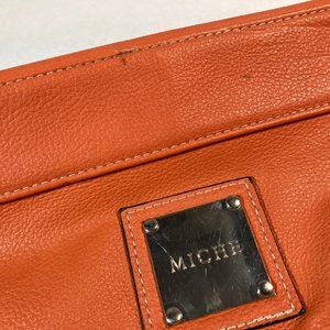 This is a fun orange prima size Miche shell called Tatum. The metal details are silver. No handles or base bag included. The shell has some minor damage, see pictures. Perfect for running errands or a night out.